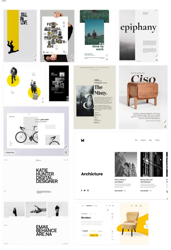 The moodboard was key to defining the new atmosphere. I focused on how negative space acts as a design element itself, allowing the products to stand out. The overlap of texts and images, along with the subtle use of yellow as an accent, were the foundation for the editorial look.