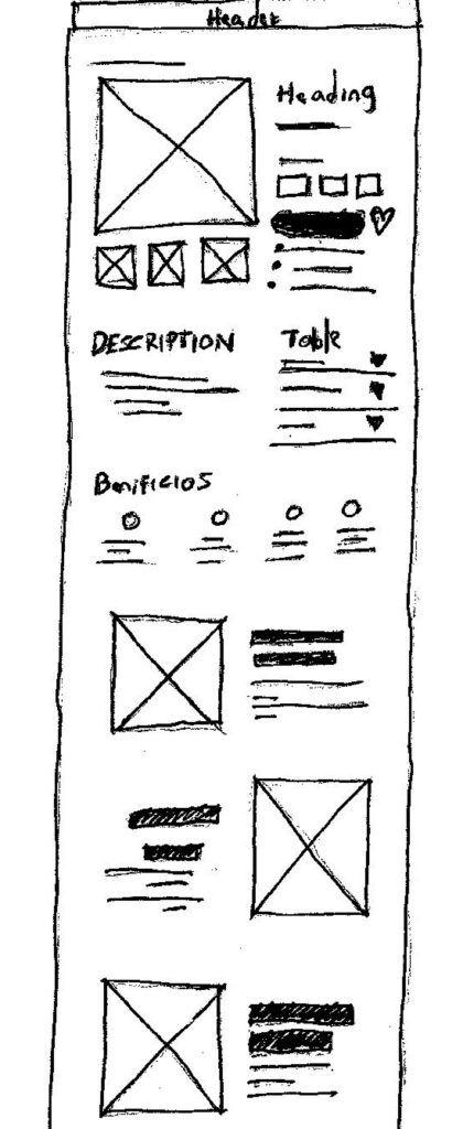 Wireframe (Product Page): In addition to the standard product gallery, I designed lower sections to tell a story about the furniture, its benefits, and materials. The goal was to connect with the aspirational user and justify the product’s value.
